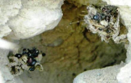 colony inside a burrow roughly as deep and wide as a quarter.