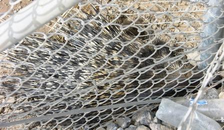 There is actually a wide variety of mammalian wildlife here in Afghanistan, but they are difficult to photograph from the confines of my location. On the left is an Afghanistan porcupine; actually a crested porcupine. That is not a cage; he is burrowed in on the other side of the compound fence. I've unfortunately lost the photo I had of one of these guys in its den. These porcupines are surprisingly large; the one in the photo was nearly three feet long. Unlike the North American variety they seem to eat just about anything. Needless to say we have plenty of rodents over here, and a mess of hedge hogs thanks to the perfect home sites we provided underneath the thousands of connexes in the FOBs. To the right is one of the many I have found under my billets. For a better picture of a hedge hog follow this link: hedge hog.