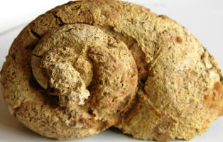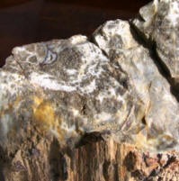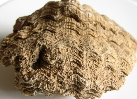 Several examples of other kinds of ancient sea life fossils. I have no idea what the one with the octopus like "suckers" on the left are. What you see is the size of a football. The thing that look likes a dinosaur tooth is not; the substance is not ivory. The thing is an interior part of a large sponge fossil. I found several of these oddities, each about an inch or so high and about as round as your thumb at its base hanging upside down under a small outcrop on the side of a cliff. The last example appears to be a fossil of some type of brain coral.